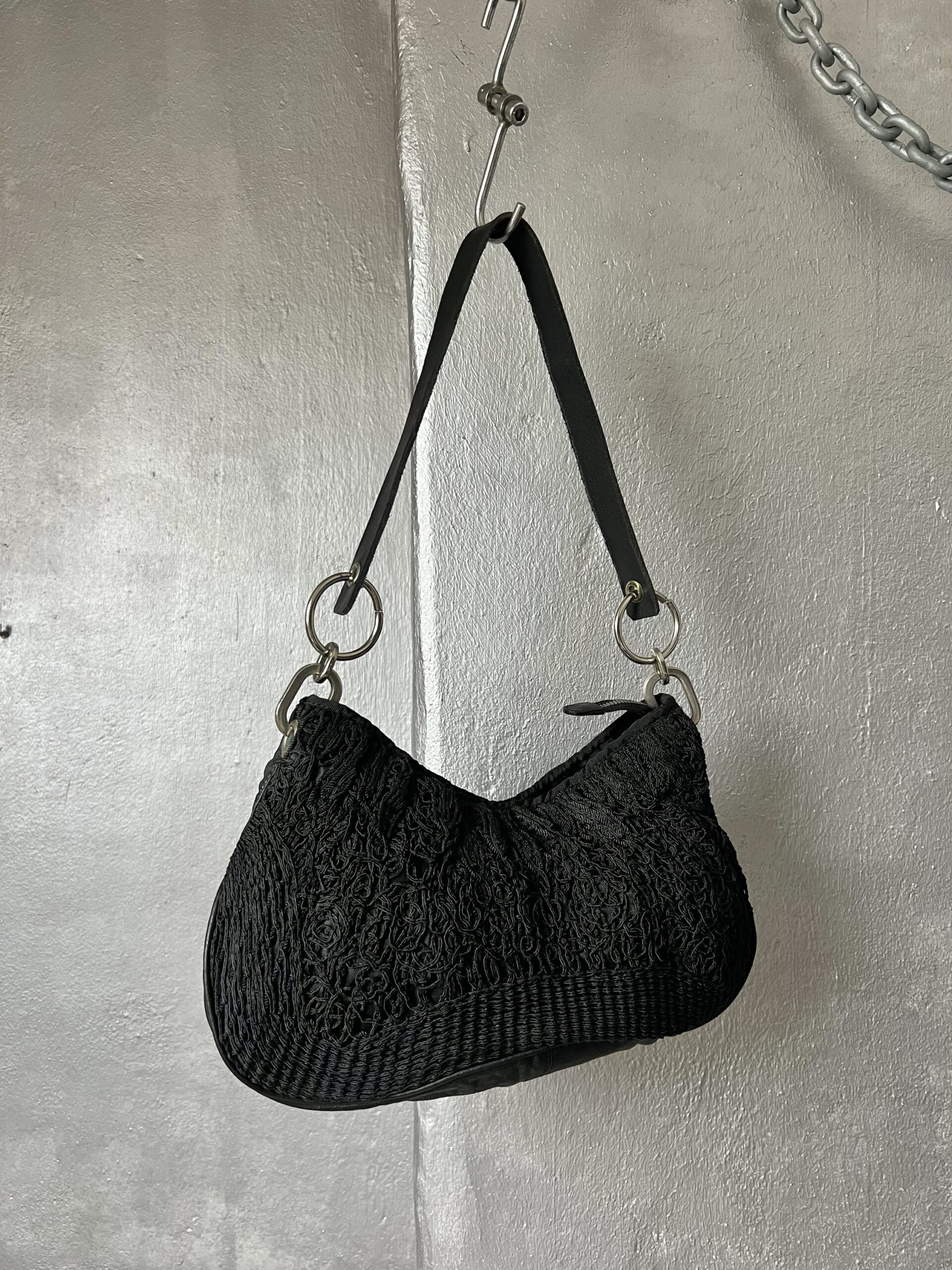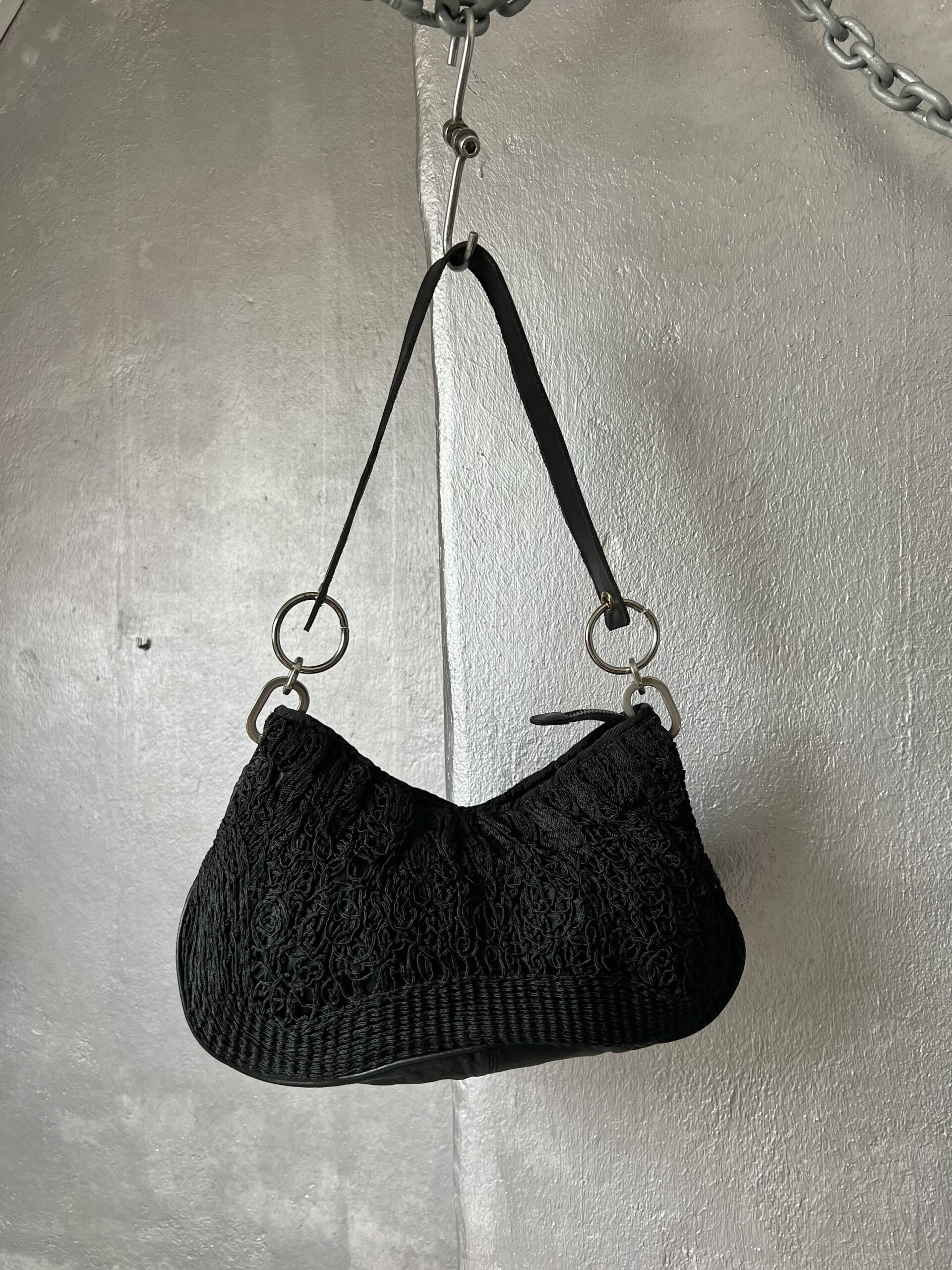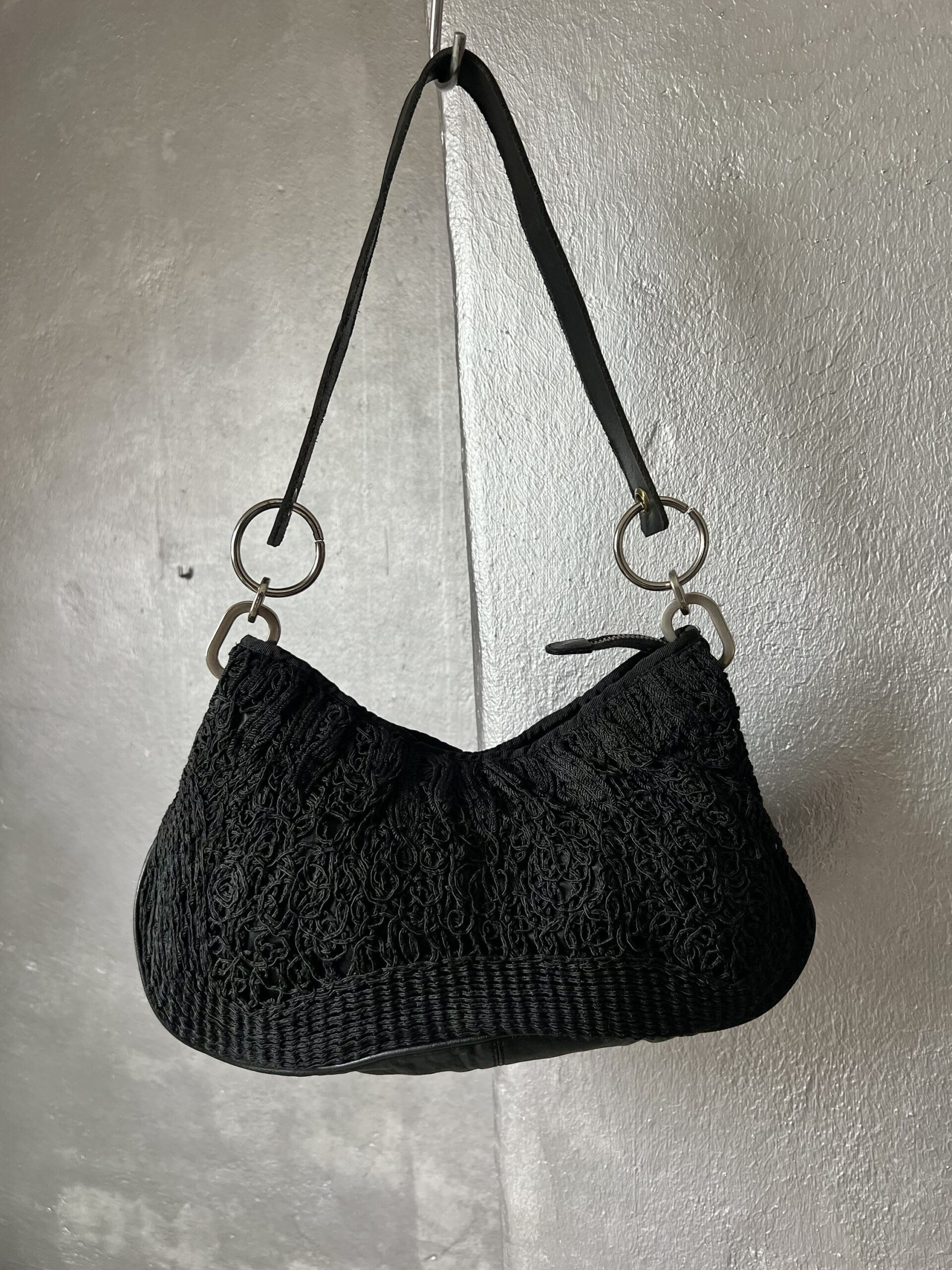 Vintage Dolce & Gabbana embroidered shoulderbag with real leather details black