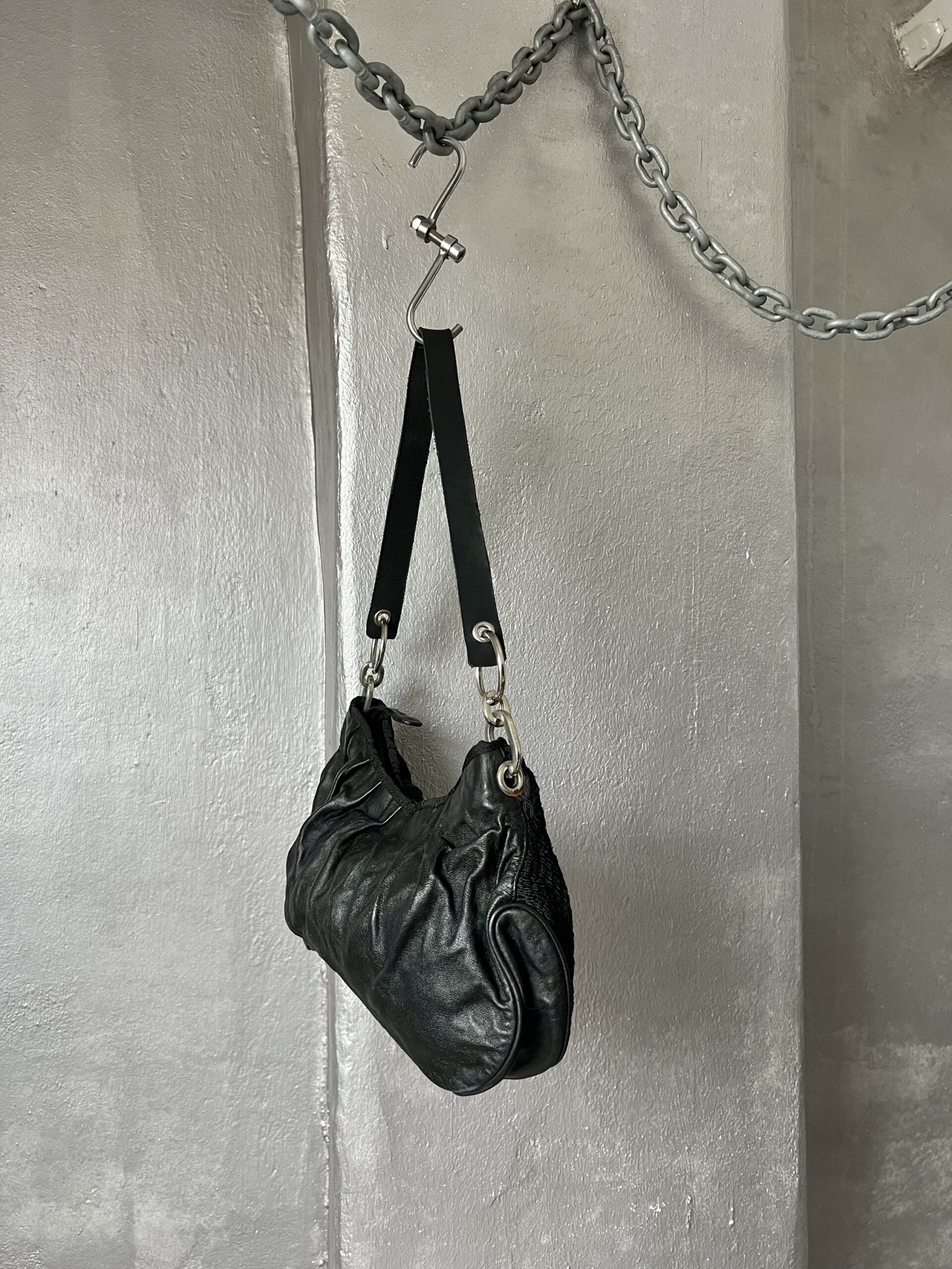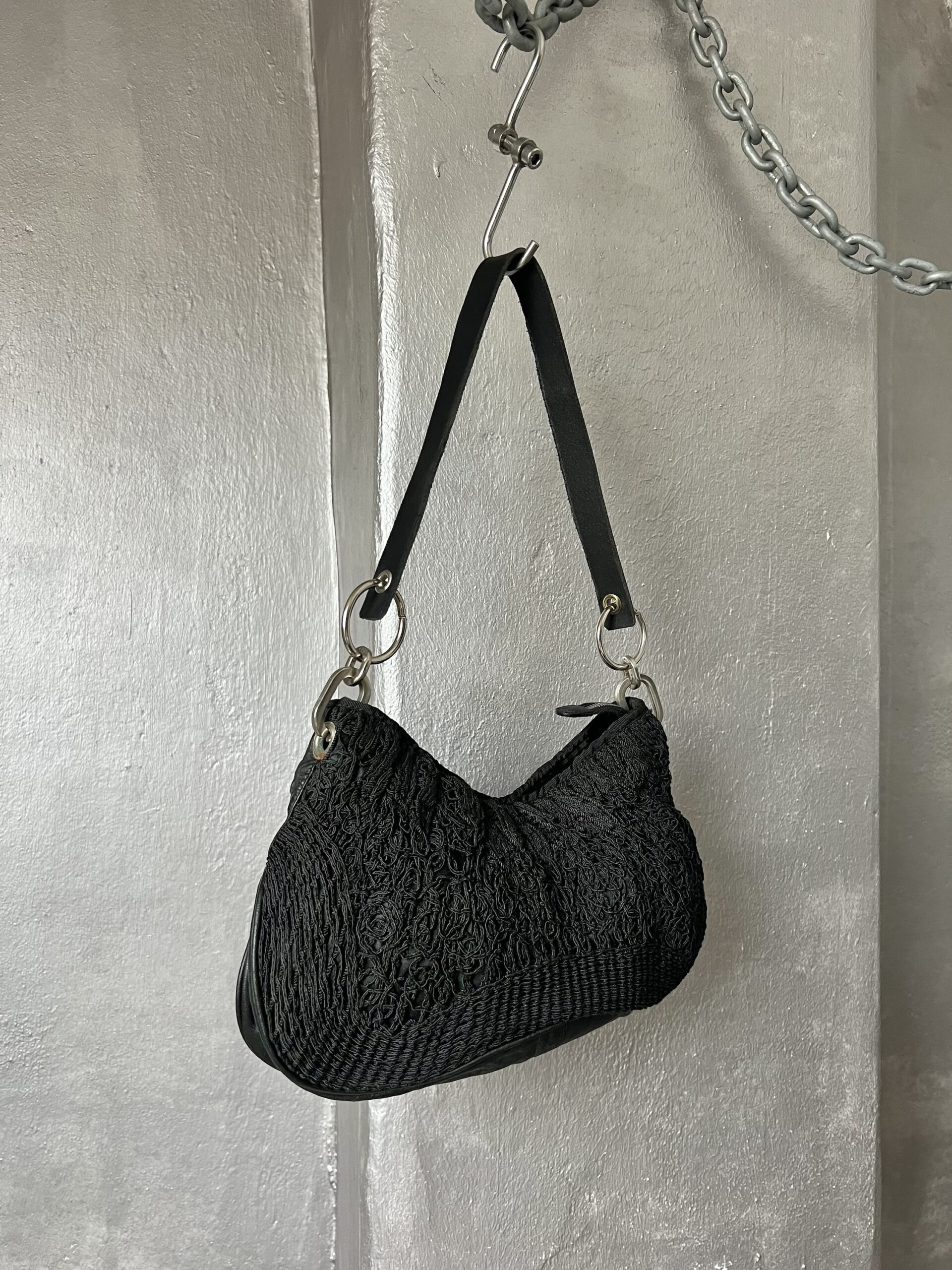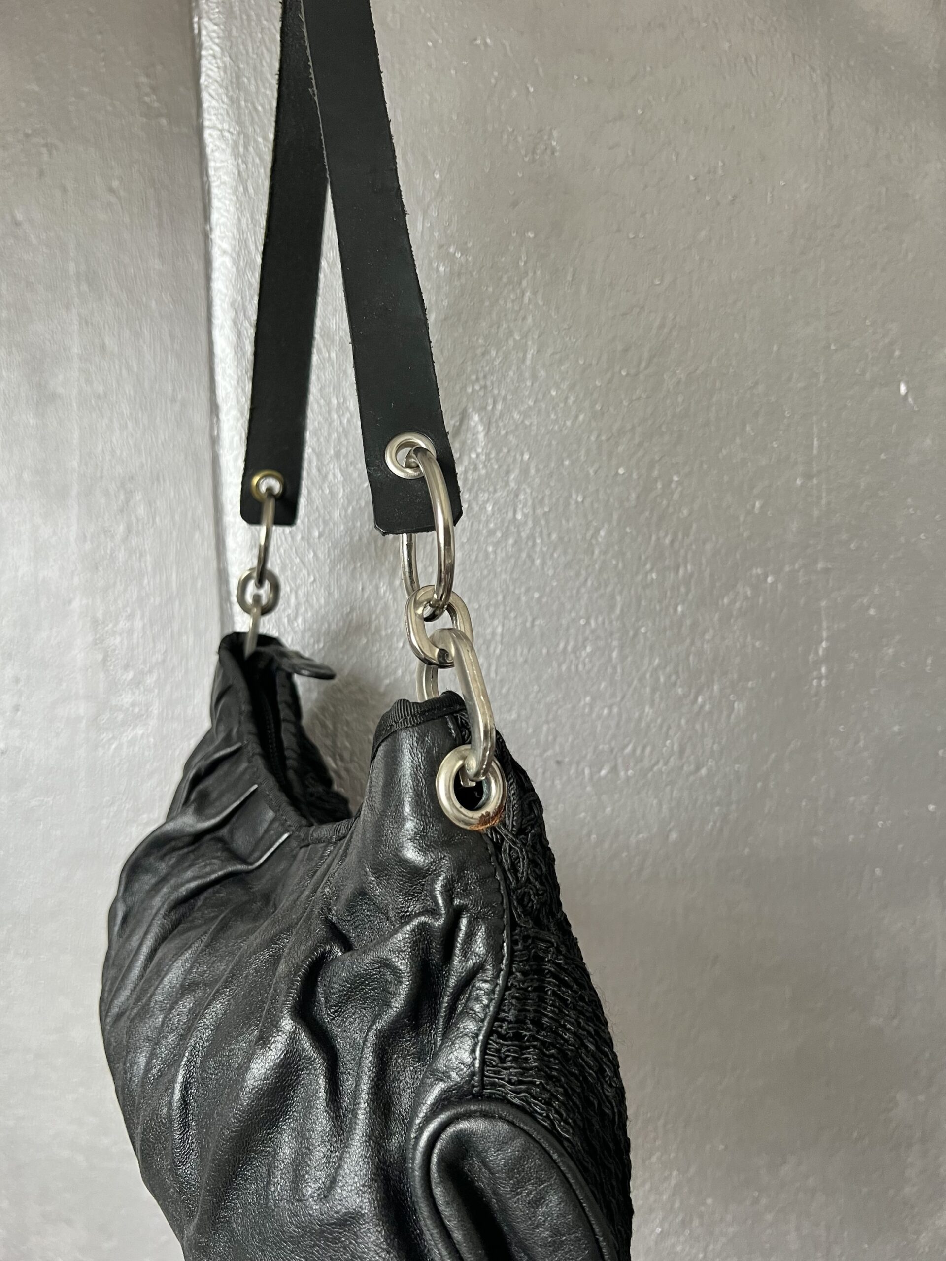 Vintage Dolce & Gabbana embroidered shoulderbag with real leather details black