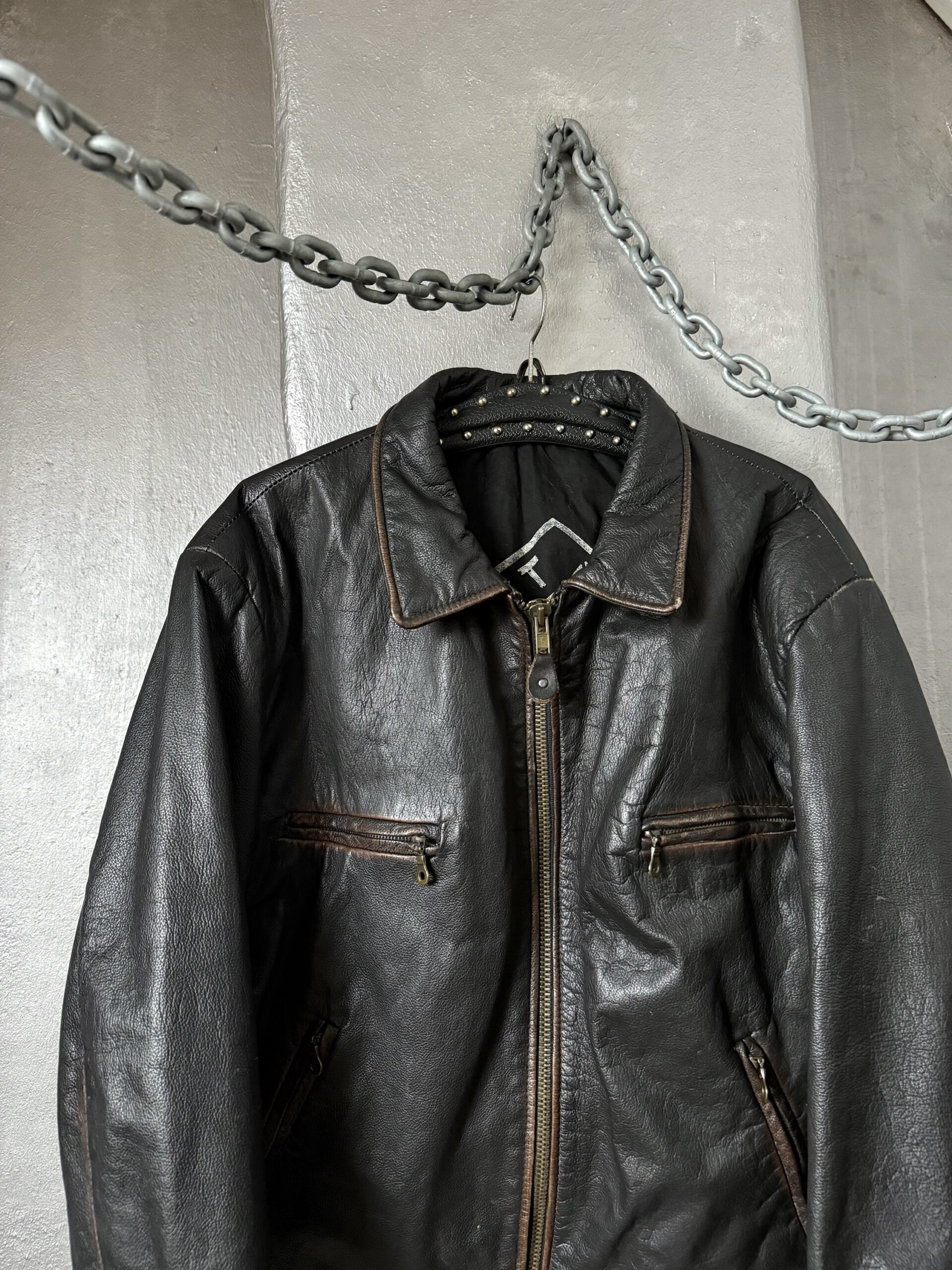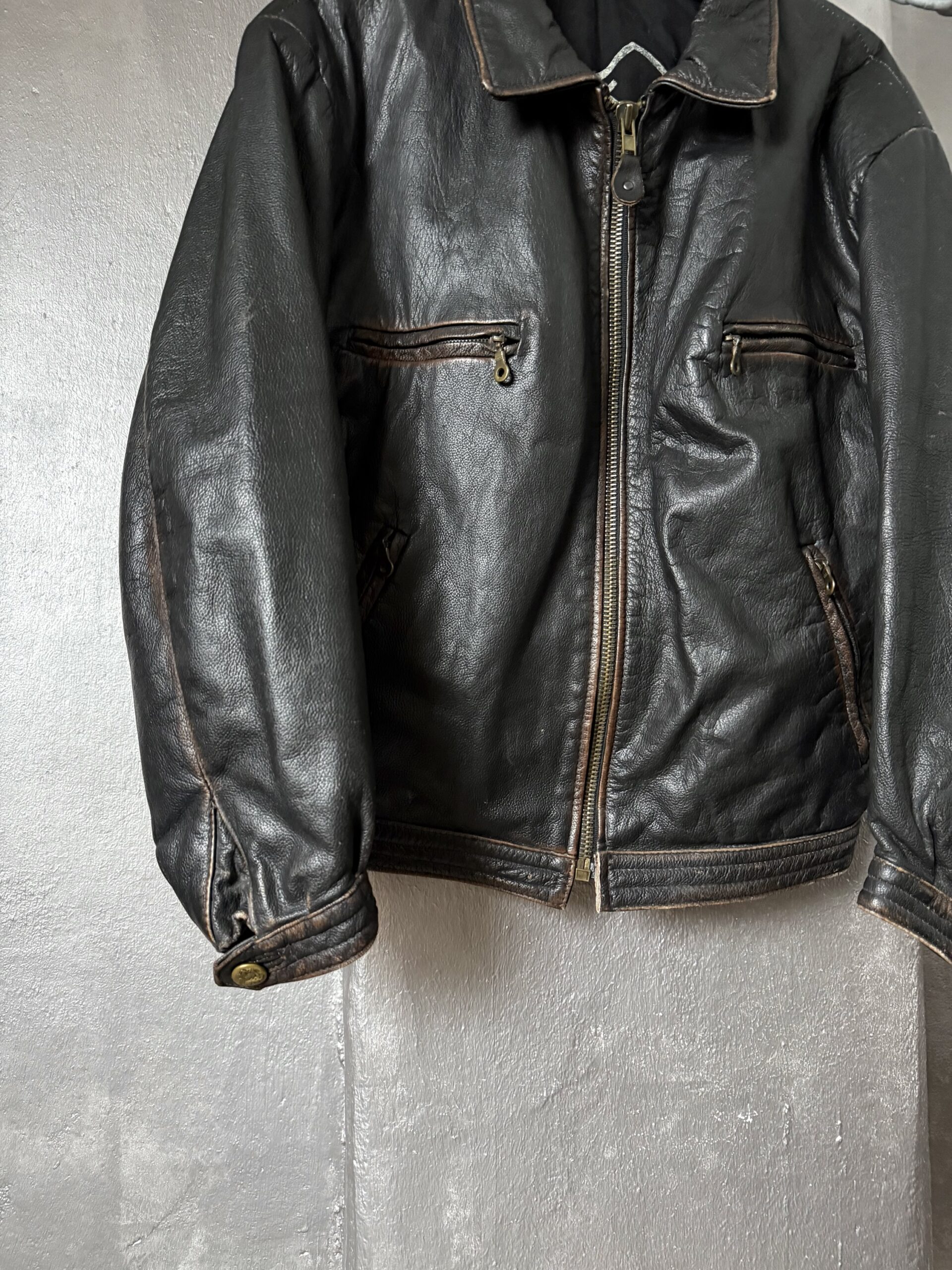 Vintage oversized real leather bomber jacket washed dark brown