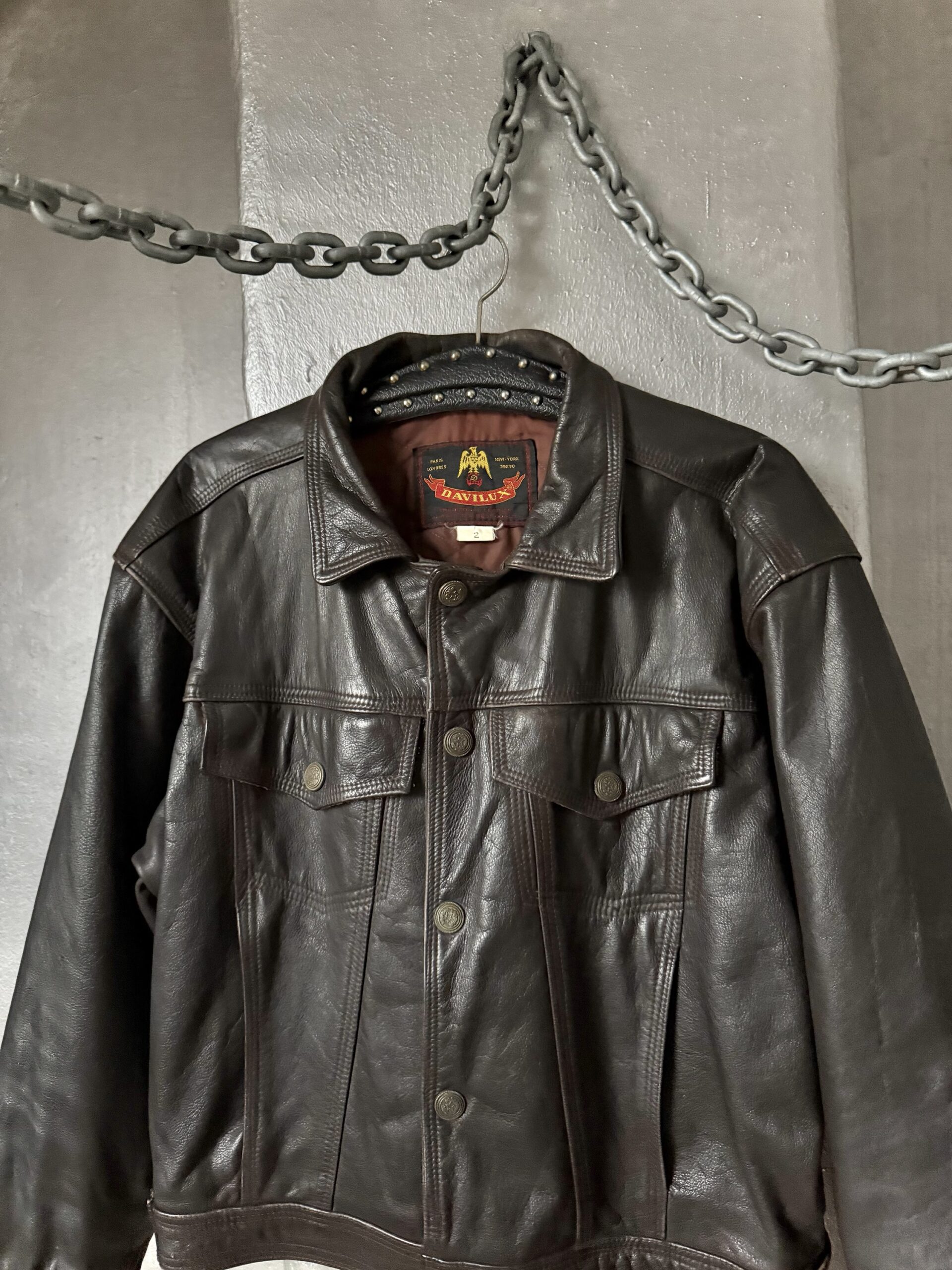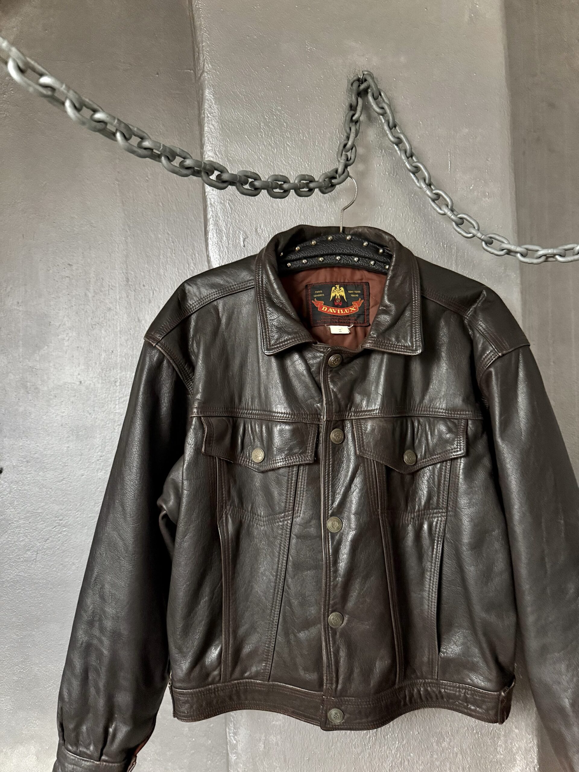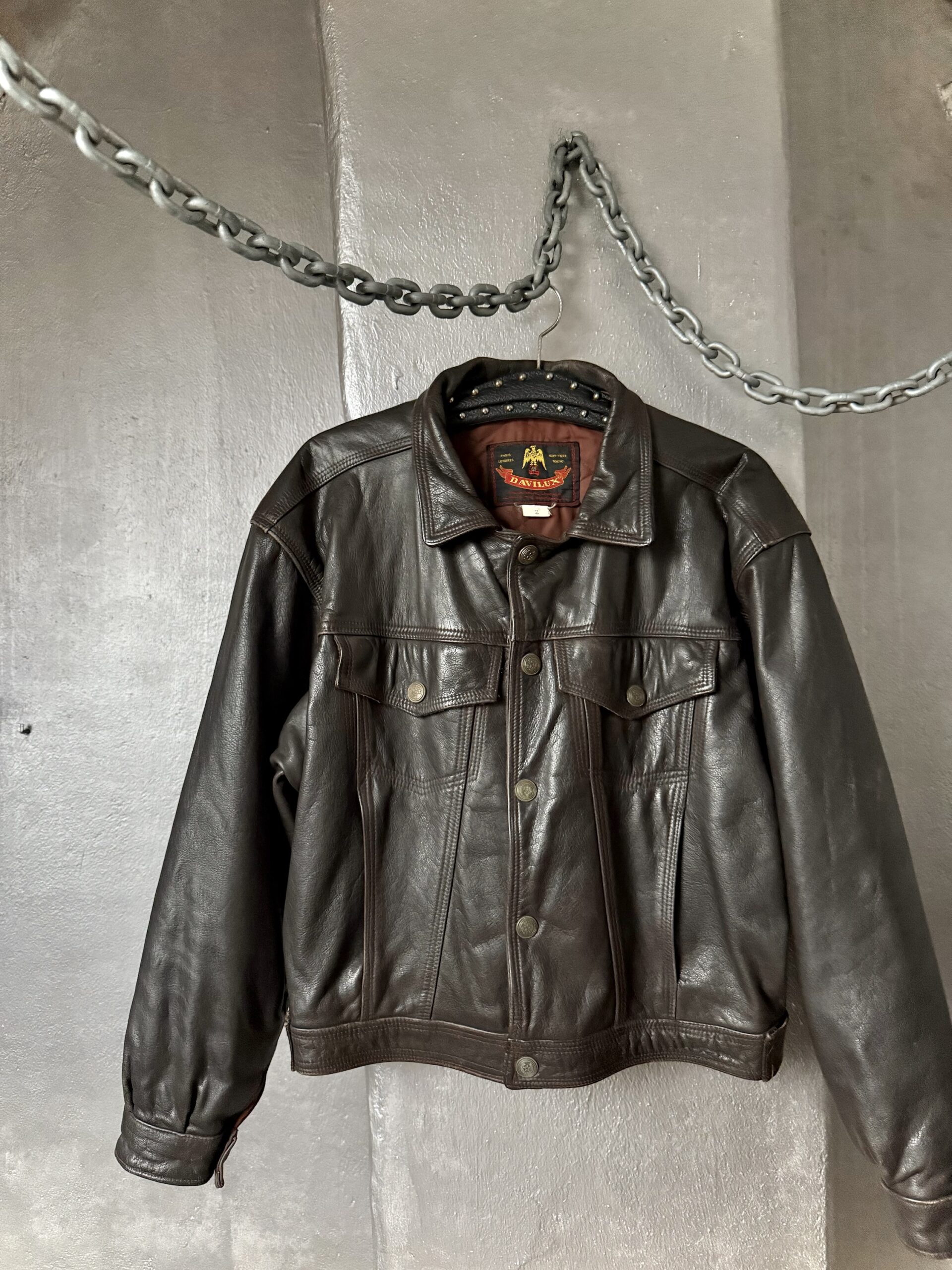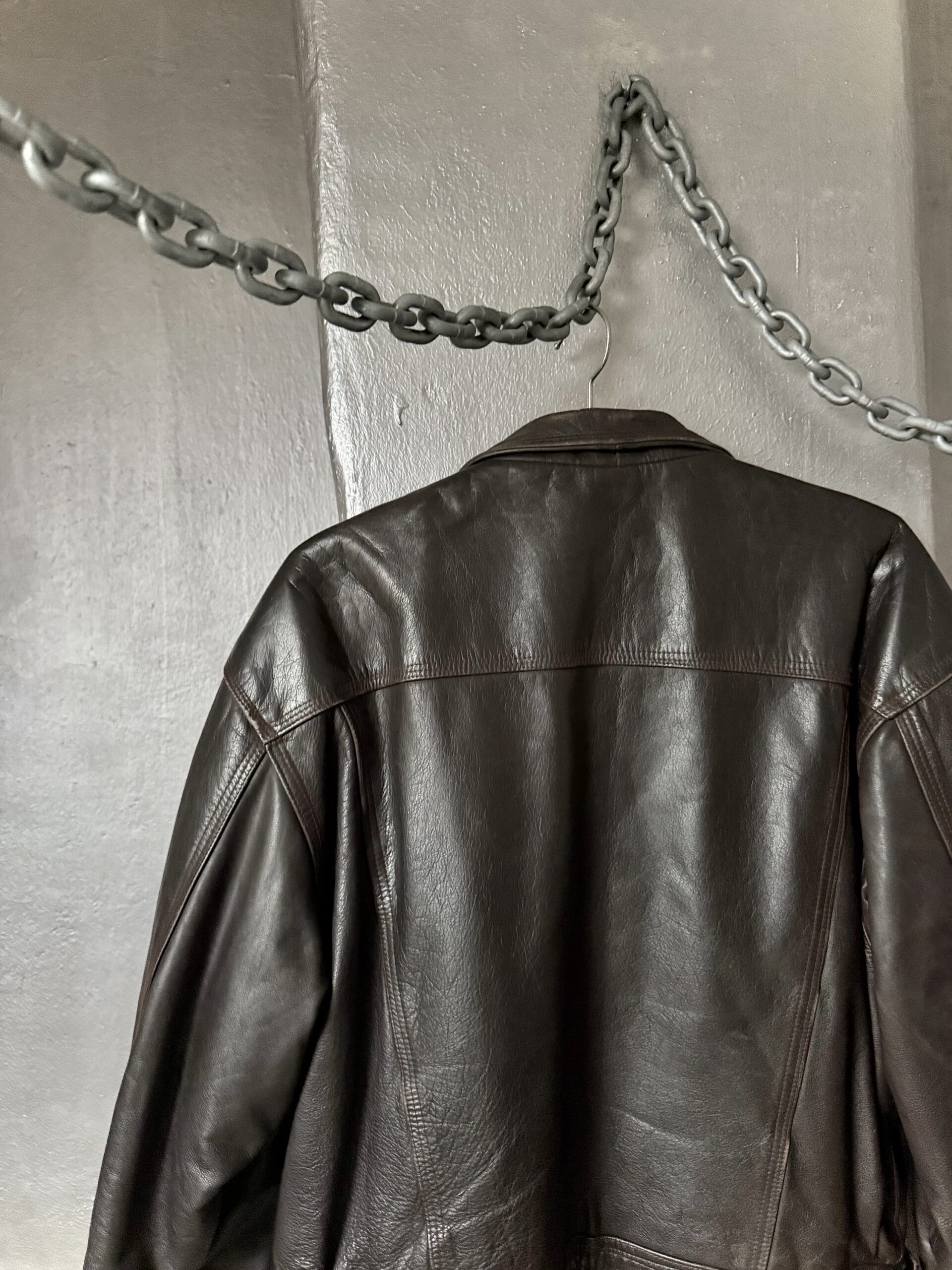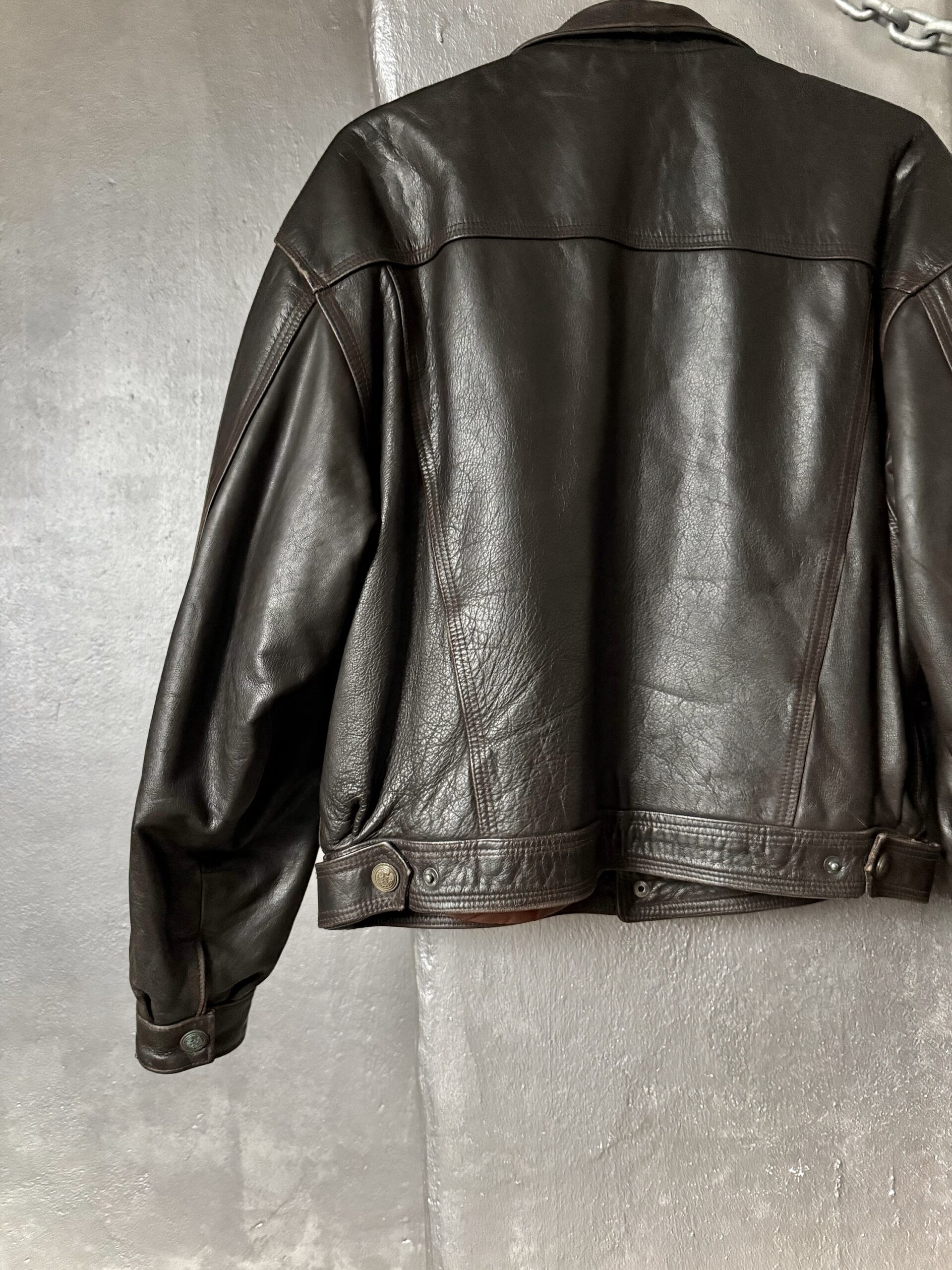 Vintage oversized real leather denim look jacket brown