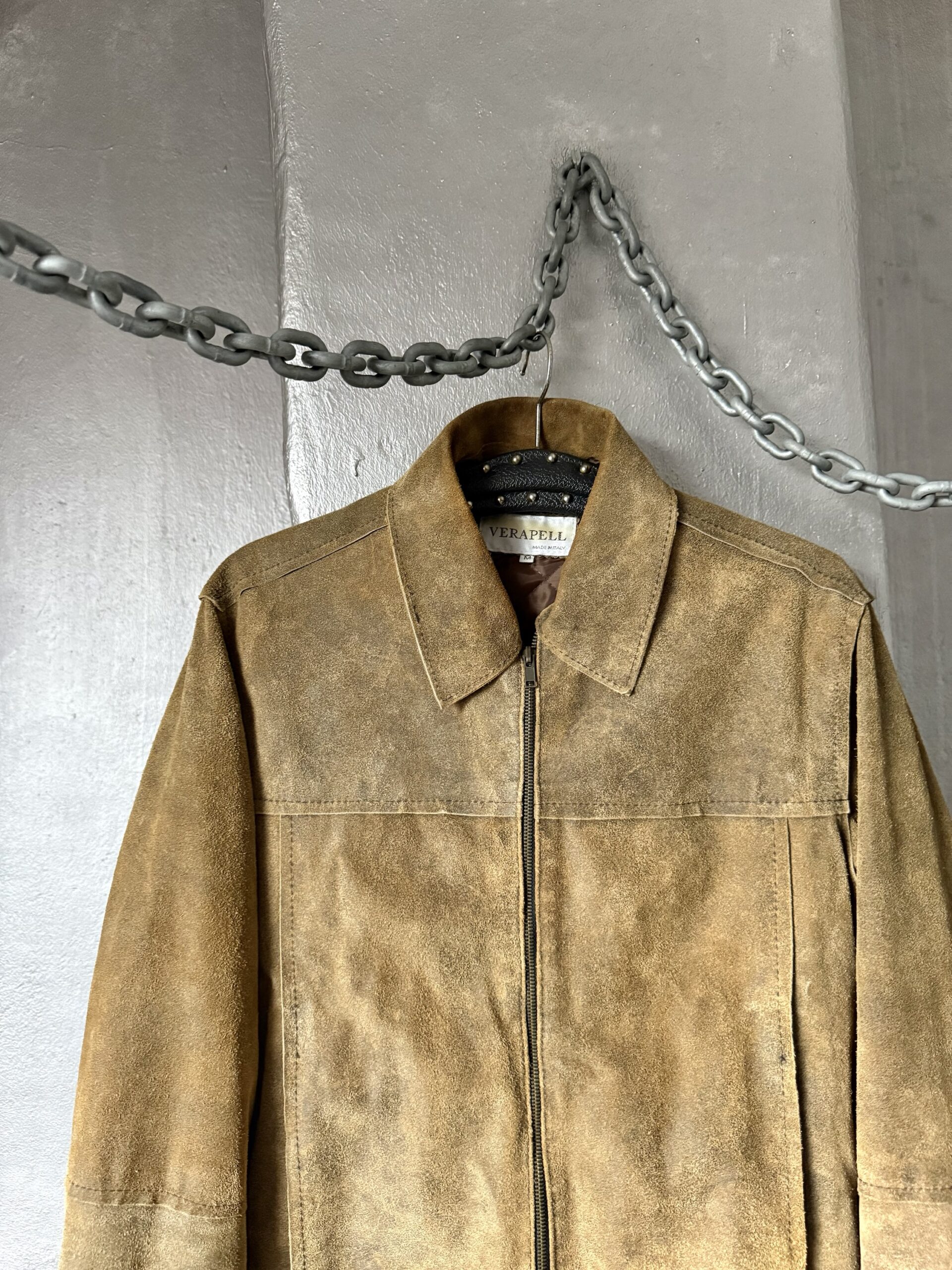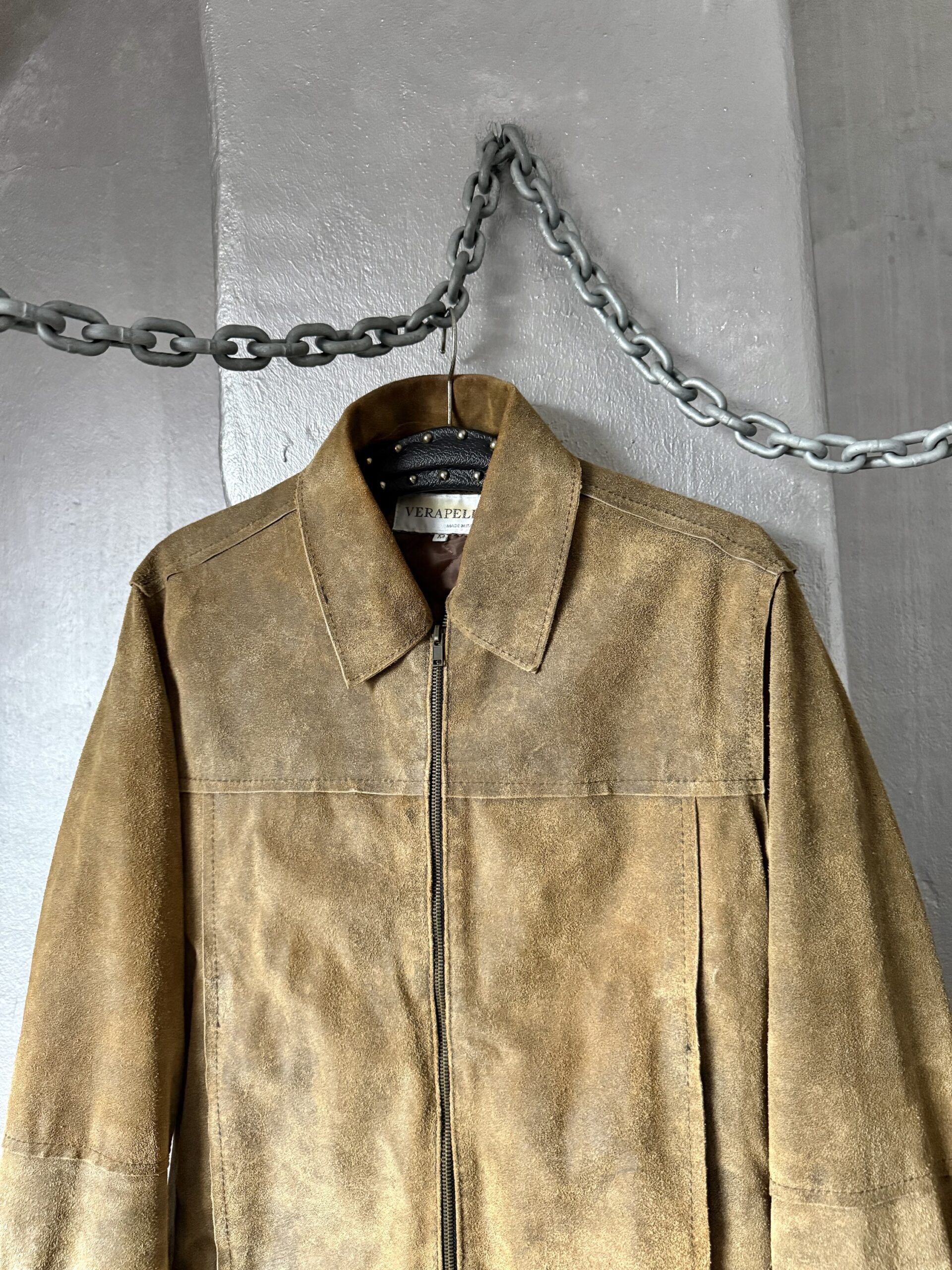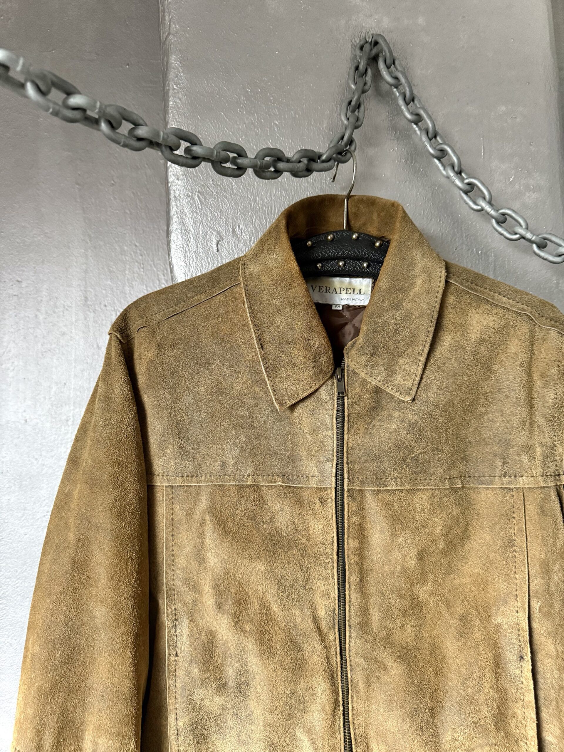 Vintage oversized rough real leather racing jacket washed brown