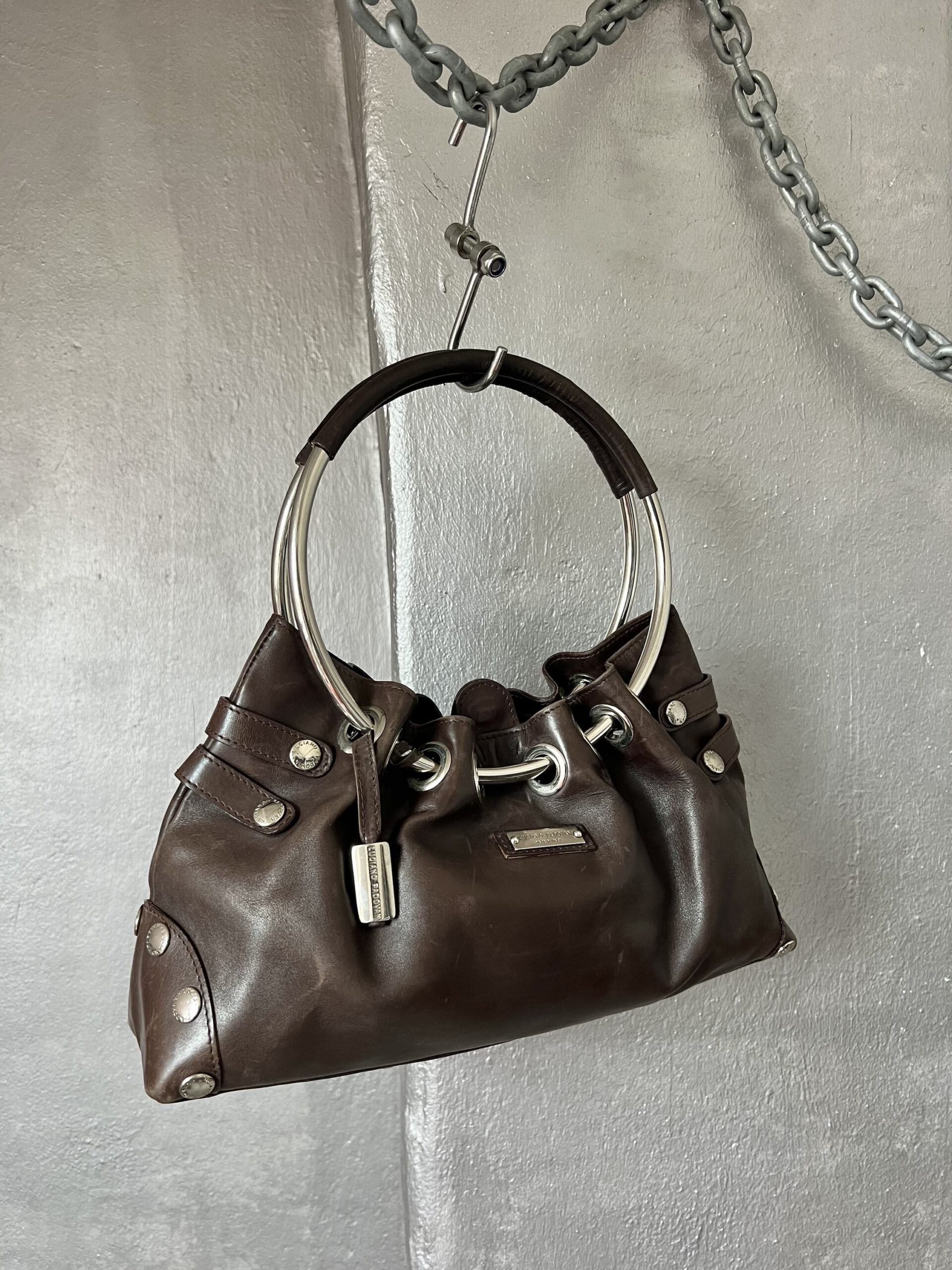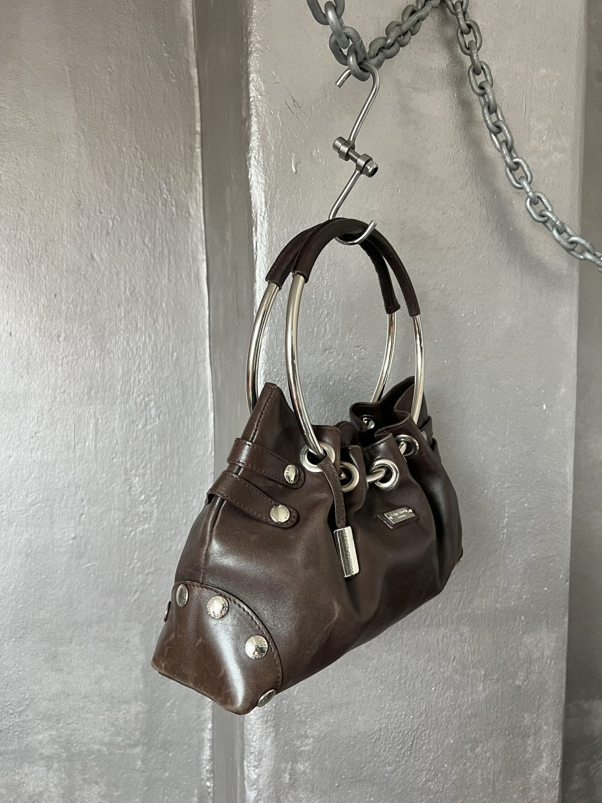 Vintage real leather shoulderbag with silver hardware brown